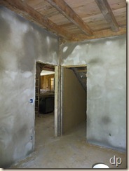 We finished the first coat of plaster on the interior walls on Tuesday of this week. We’ve been working on this goal for the last month. It took 59 batches of plaster to get the first coat done – about 6 tons of dry material.
