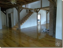 I took a few photos of the floors this morning to share here in the blog. The oiling is not finished yet, but these photos should give you an idea of how things look right now. (Note: left-clicking on any photo will open a larger view of it.)